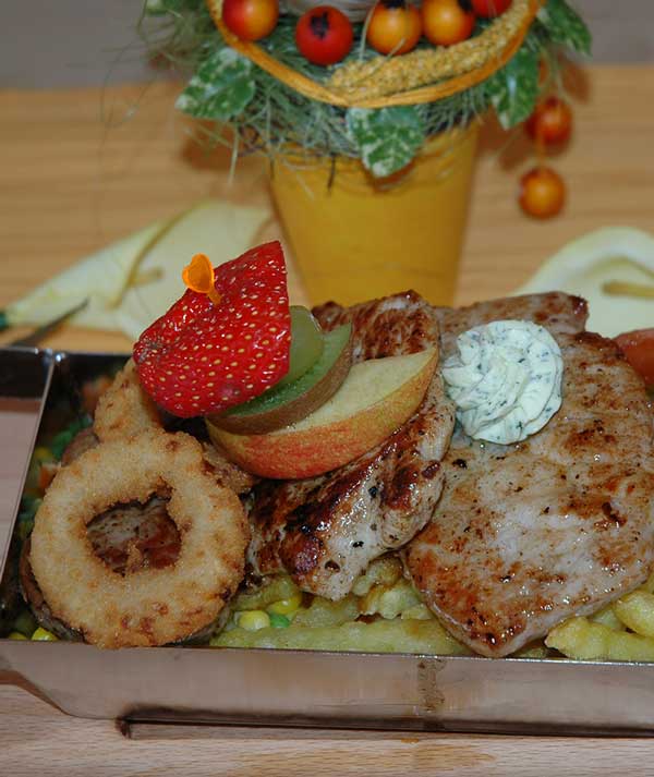 In der Frauenbacher Stub’n im Bezirk Südoststeiermark erwarten Sie Hausmannskost und ausgewählte Spezialitäten der italienischen Küche. Besonderes Augenmerk liegt seit jeher auf den jüngsten Gästen, für die speziell angepasste Portionen angeboten werden. Kulinarisch auf seine Kosten kommt aber jedermann. Freuen Sie sich auf Schmankerl wie Piccata vom Schwein, Kaspressknödel, Grillkotelett, unser Riesen-Wiener-Schnitzel, Cordon Bleu mit Pommes frites, Gemüseschnitzerl mit Sauce Tartar, eine große Auswahl an Pizzen und Nudelgerichten, Salate und vieles mehr! Besonders ans Herz legen möchten wir Ihnen unser Bauernreindl, ein gegrilltes Schweinskotellet in Knoblauchsaft mit Gemüse, Kartoffelspalten und Speck. Dazu empfehlen wir ein alkoholisches oder alkoholfreies Getränk nach Wahl.